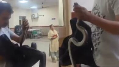 डसने के बाद सांप को अस्पताल लेकर पहुंचा युवक।