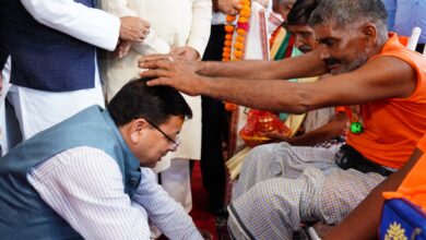 सीएम धामी ने किया शिवभक्तों का स्वागत, कांवड़ियों के धुले पैर