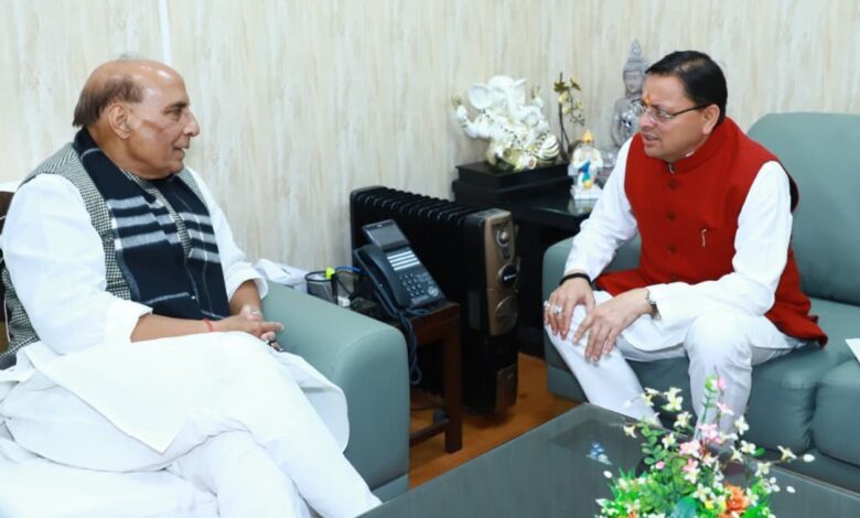 देहरादून । मुख्यमंत्री पुष्कर सिंह धामी ने नई दिल्ली में केंद्रीय रक्षा मंत्री राजनाथ सिंह से शिष्टाचार भेंट की। मुख्यमंत्री ने केंद्रीय मंत्री से एयर फोर्स ऑडिट ब्रांच देहरादून में ही यथावत रहने देने और ग्वालदम-नंदकेसरी-थराली-देवाल-मुन्दोली-वाण मोटर मार्ग के रख-रखाव का कार्य लोक निर्माण विभाग से ही कराए जाने का अनुरोध किया।