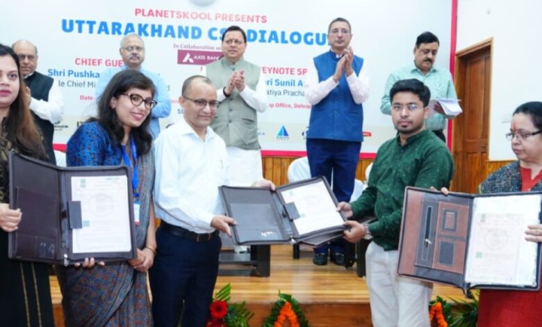 देहरादून । मुख्यमंत्री पुष्कर सिंह धामी ने बुधवार को मुख्यमंत्री आवास में उत्तराखण्ड सी.एस.आर. डायलॉग कार्यक्रम में प्रतिभाग किया। इस अवसर पर उन्होंने मुख्यमंत्री आदर्श ग्राम सारकोट के प्राथमिक विद्यालय में डिजिटल क्लासरूम का वर्चुअल शुभारंभ भी किया। कार्यक्रम में एक्सिस बैंक समूह के साथ राज्य के 24 विद्यालयों के डिजिटलाइजेशन के लिए तथा टोयटा के साथ पर्यावरण संरक्षण, शिक्षा, स्वास्थ्य एवं सामुदायिक सशक्तिकरण के क्षेत्र में सी.एस.आर. संचालित करने के लिए एमओयू किया गया।