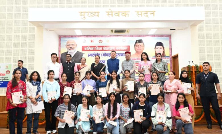 देहरादून: मुख्यमंत्री पुष्कर सिंह धामी ने शनिवार को मुख्यमंत्री कैम्प कार्यालय स्थित मुख्य सेवक सदन में अंतरराष्ट्रीय बालिका दिवस के अवसर पर आयोजित बालिका शिक्षा प्रोत्साहन कार्यक्रम में प्रतिभाग किया। महिला सशक्तिकरण एवं बाल विकास विभाग द्वारा आयोजित इस कार्यक्रम में 326 मेधावी बालिकाओं को स्मार्टफोन प्रदान किए गए। जनपद स्तर पर हाईस्कूल एवं इंटरमीडिएट की परीक्षा के प्रथम तीन टॉपर बालिकाओं एवं विकासखण्ड स्तर पर टॉपर बालिकाओं को मुख्यमंत्री द्वारा पुरस्कृत किया गया।