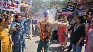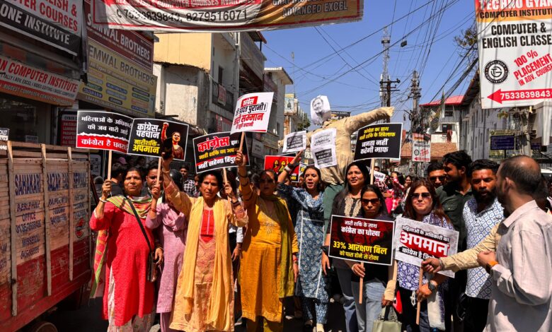 प्रदर्शन के दौरान महिलाओं ने कांग्रेस पार्टी और विपक्षी नेताओं के खिलाफ नारेबाजी की तथा आक्रोश व्यक्त करते हुए पुतला दहन किया।