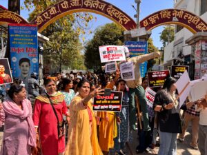 देहरादून। संसद में विपक्षी सांसदों द्वारा नारी शक्ति वंदन अधिनियम का समर्थन न किए जाने के विरोध में आज डीएवी महाविद्यालय की छात्राओं एवं बड़ी संख्या में महिलाओं ने डीएवी कॉलेज चौक पर जोरदार प्रदर्शन किया।
