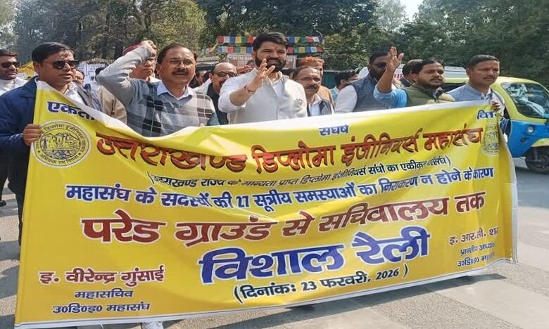 देहरादून/ अपनी 27 सूत्रीय मांगों का निराकरण न होने के पश्चात सोमवार को विभिन्न जिलों से देहरादून पहुंचे डिप्लोमा इंजीनियर्स महासंघ के सदस्यों ने विशाल रैली निकालते हुए सचिवालय कूच किया।