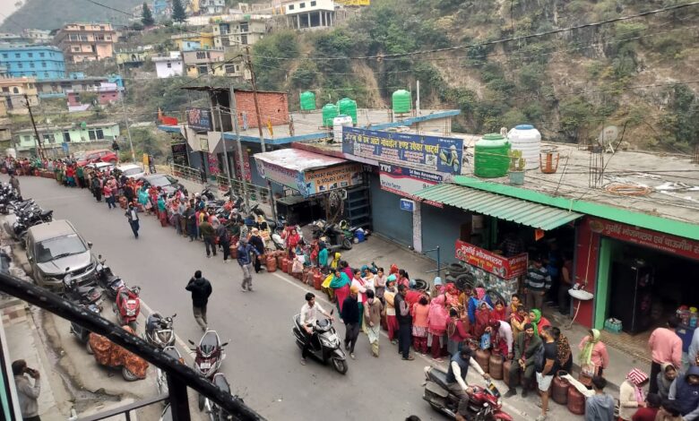 टिहरी में गैस सिलेंडर की किल्लत से भीड़