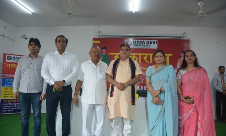 सेलाकुई : सेलाकुई स्थित माया देवी विश्वविद्यालय में “संस्कारारम्भ 2025” के छठवें दिन नये छात्र-छात्राओं के स्वागत समारोह का आयोजन विश्वविद्यालय के अध्यक्ष एम.एल. जुयाल एवं उपाध्यक्षा डॉ. तृप्ति जुयाल सेमवाल की उपस्थिति तथा कुलपति प्रो. डॉ. आशीष सेमवाल की अध्यक्षता में सम्पन्न हुआ।