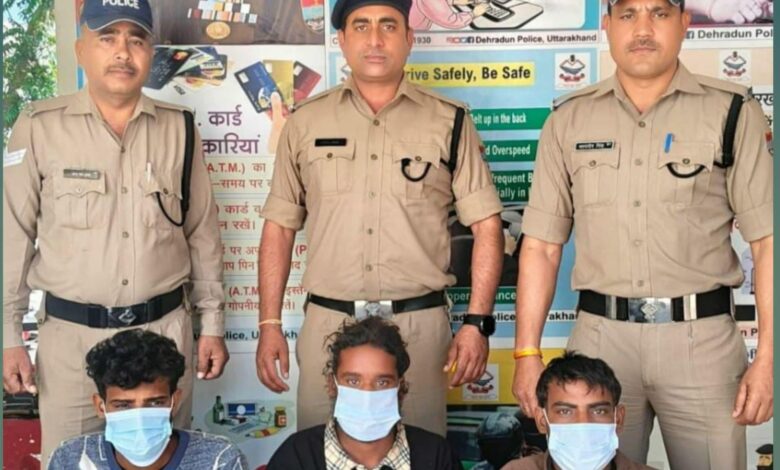 गिरफ्तार तीनों आरोपी हरिद्वार के घिस्सुपुरा (सपेरा बस्ती) के रहने वाले हैं। पुलिस ने बिंडलास रेजीडेंसी के पास से इन्हें दबोचा। पकड़े गए आरोपियों की पहचान कुनाल (19), अलकित (22) और नितिन (21) के रूप में हुई है।