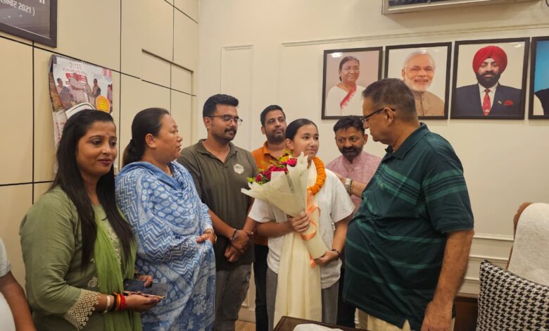 देहरादून। कैबिनेट मंत्री गणेश जोशी ने आज देहरादून राजपुर रोड, जाखन निवासी कक्षा 7 की छात्रा अनुष्का ओतानी को राष्ट्रीय स्तर पर शूटिंग प्रतियोगिता में चयनित होने पर सम्मानित किया। मंत्री जोशी ने अनुष्का को शॉल ओढ़ाकर एवं पुष्प गुच्छ भेंट कर बधाई दी और उसके उज्ज्वल भविष्य की कामना की। कैबिनेट मंत्री जोशी ने कहा कि अनुष्का ने अपने परिश्रम और लगन से प्रदेश का नाम रोशन किया है, जो युवाओं के लिए प्रेरणा का स्रोत है। उन्होंने आशा व्यक्त की कि अनुष्का भविष्य में अंतरराष्ट्रीय स्तर पर भी अपनी प्रतिभा का प्रदर्शन कर देश का गौरव बढ़ाएगी।