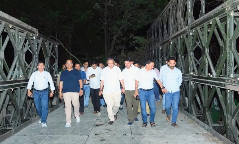 देहरादून। मसूरी-देहरादून मार्ग पर कुठालगेट शिव मंदिर के निकट निर्मित दूसरे अस्थायी बैलीब्रिज का शुक्रवार देर रात कैबिनेट मंत्री गणेश जोशी ने उद्घाटन कर इसे जनता को समर्पित किया। विभागीय अधिकारियों के साथ निरीक्षण के बाद पुल को आवागमन के लिए खोल दिया गया।