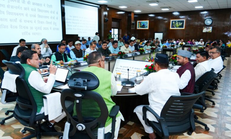 देहरादून : विधायकगणों द्वारा उठाई गई जन समस्याओं को अधिकारी पूरी गंभीरता से लें। विधानसभा क्षेत्रों की विभिन्न समस्याओं के समाधान के लिए अधिकारी विधायकगणों के साथ निरंतर संवाद करें। राज्य की सभी 70 विधानसभाओं के अंतर्गत की गई घोषणाओं और अन्य महत्वपूर्ण योजनाओं के सफल क्रियान्वयन के लिए शासन-प्रशासन और विधानसभा क्षेत्र के बीच सेतु की भूमिका में कार्य करने हेतु अपर सचिव स्तर के अधिकारियों को जिम्मेदारी दी जाए। मुख्यमंत्री श्री पुष्कर सिंह धामी ने बुधवार को सचिवालय में टिहरी लोकसभा क्षेत्र के अंतर्गत आने वाली विधानसभाओं की मुख्यमंत्री घोषणाओं और अन्य कार्यों की समीक्षा के दौरान ये निर्देश अधिकारियों को दिए।