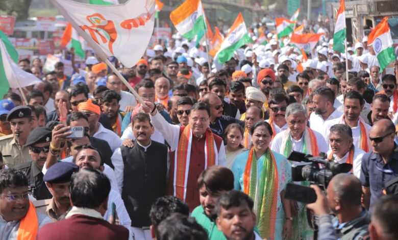 बडा़ेदरा/देहरादून । केंद्रीय रक्षा मंत्री राजनाथ सिंह के साथ मुख्यमंत्री पुष्कर सिंह धामी ने मंगलवार को साधली, बड़ोदरा, गुजरात में सरदार@150 यूनिटी मार्च के अंतर्गत आयोजित सरदार गाथा कार्यक्रम में प्रतिभाग किया।