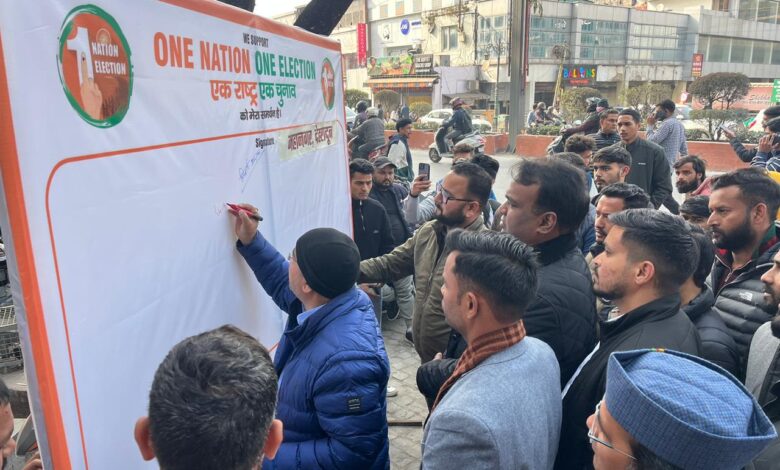 देहरादून । राजधानी देहरादून में शनिवार को गांधी पार्क गेट पर “एक राष्ट्र एक चुनाव” के समर्थन में हस्ताक्षर अभियान का शुभारंभ किया गया। जिसमें युवाओं ने बढ़ चढ़कर हिस्सा लिया। कार्यक्रम में भाजपा के महानगर अध्यक्ष सिद्धार्थ अग्रवाल ने कहा की बार-बार चुनाव होने से जनता को काफी परेशानियों का सामना करना पड़ता है, प्रदेश संयोजक ‘one nation one election’ रमेश गाड़िया ने कहा की बार-बार चुनाव होने से जो पैसा जनता की सेवा में लगना चाहिए वह चुनाव में खर्च होता है एक बार चुनाव होने से पैसे की काफी बचत होगी। कार्यक्रम के संयोजक व संचालक पारस गोयल ने कहा की सोमवार से या अभियान पूरे महानगर के सभी कॉलेज केंपस,इंस्टिट्यूट,कोचिंग सेंटर विश्वविद्यालय में चलाया जाएगा।