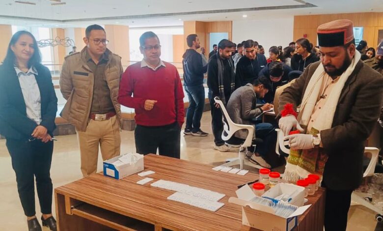 देहरादून। जिलाधिकारी सविन बंसल ने नशीले पदार्थों के अवैध कारोबार व विद्यार्थियों में बढती नशे की प्रवृत्ति पर सख्त रुख अपनाते हुए जिले में स्थित सभी शैक्षित संस्थानों में रोस्टरवार अभियान चलाते हुए टेस्टिंग कराने के निर्देश दिए हैं। जिलाधिकारी के निर्देशों के अनुपालन में उप जिलाधिकारी सदर हरिगिरि के नेतृत्व में आज दूसरे दिन भी ग्राफिकएरा डीम्ड यूनिवर्सिटी 150 छात्र/छात्रओं की रेंडम सैम्पलिंग की गई। वहीं जिलाधिकारी के सख्त निर्देश है कि यदि किसी स्कूल कालेज में ड्रग टेस्टिंग में कोई विद्यार्थी, बच्चे पासिटिव पाए जाते हैं तो सम्बन्धित डीन, कालेज स्वामी के विरूद्ध अपराधिक कार्यवाही की जाएगी। मा० मुख्यमंत्री के नशामुक्त राज्य के विजन को धरातल पर उतारने को जिला प्रशासन ने बड़े व कड़े कदम उठाते हुए विद्यार्थियों / किशोंरो को नशे के दुष्प्रभाव से बचाने कमर ली है।
