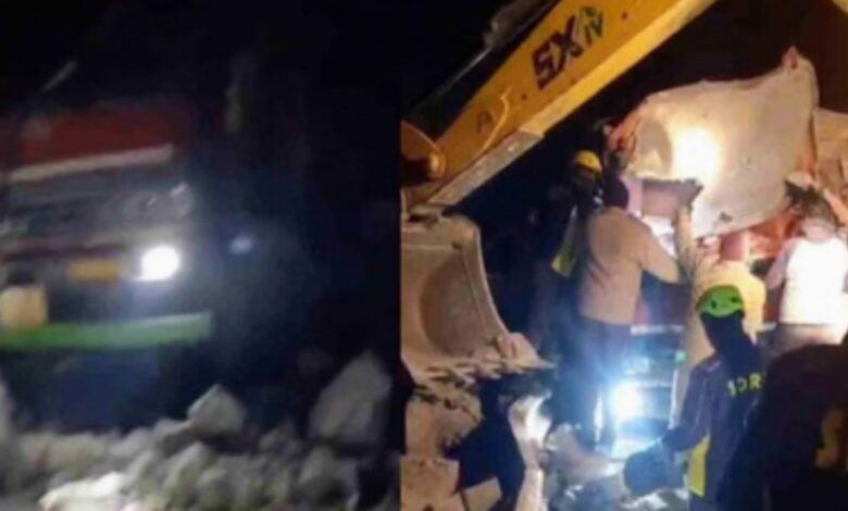 ट्रक के केबिन पर गिरा विशाल बोल्डर