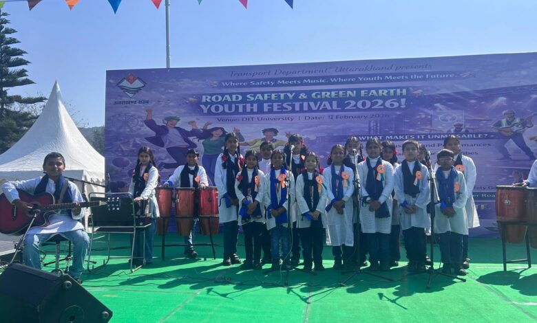 देहरादून। परिवहन विभाग, देहरादून द्वारा डीआईटी यूनिवर्सिटी में “उत्तराखण्ड रोड सेफ्टी एंड ग्रीन अर्थ यूथ फेस्टिवल–2026” का आयोजन किया गया। कार्यक्रम का समय दोपहर 12:00 बजे से सायं 5:00 बजे तक निर्धारित रहा। इस आयोजन का उद्देश्य युवाओं को सड़क सुरक्षा एवं पर्यावरण सुरक्षा के प्रति संवेदनशील एवं जागरूक बनाना था। कार्यक्रम के माध्यम से युवाओं को संदेश दिया गया कि जीवन अनमोल है, दुर्घटनाओं एवं प्रदूषण नियंत्रण हेतु नियमों का पालन अत्यंत आवश्यक है तथा जिम्मेदार नागरिक बनकर हम किसी की जान बचा सकते हैं।
