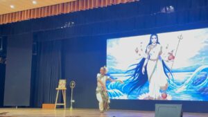 सांस्कृतिक प्रस्तुतियों की शुरुआत “शिव मंगलाचरण – गंगा तरंग” से की गई, जो ओडिशी नृत्य की पारंपरिक मंगलाचरण रचना है। इस प्रस्तुति में नृत्यांगना ने भगवान शिव, अपने गुरु, धरती माता और दर्शकों को नमन करते हुए आशीर्वाद की कामना की। गंगा के पावन प्रवाह और उसकी दिव्यता को अत्यंत भावपूर्ण और सजीव शैली में प्रस्तुत किया गया, जिसने दर्शकों को आध्यात्मिक अनुभूति से भर दिया।